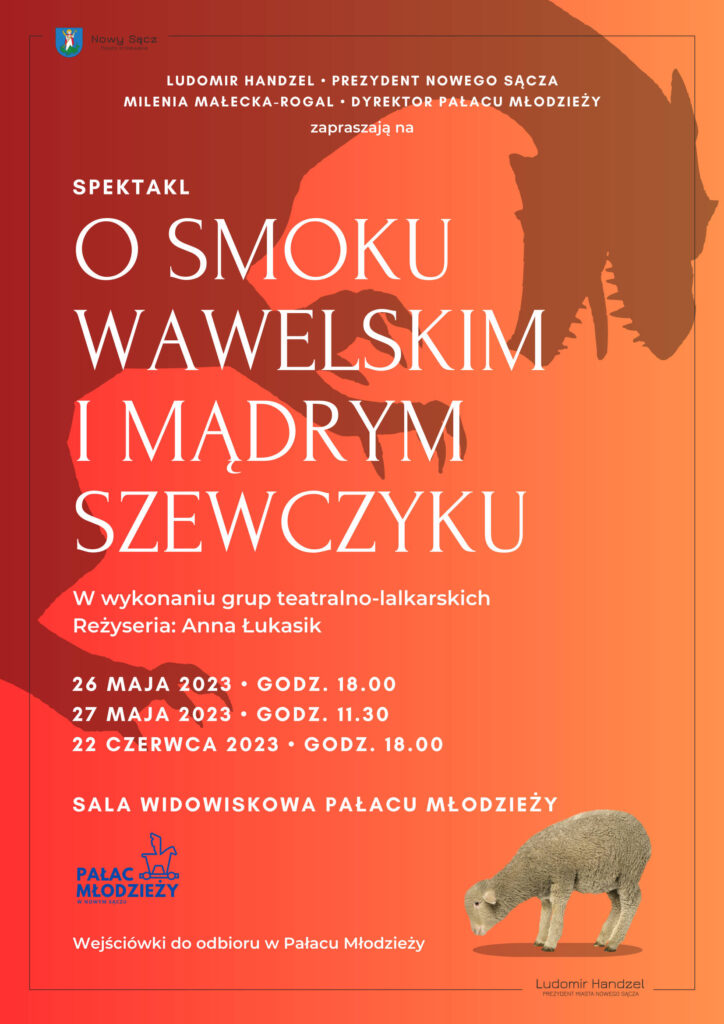 Dyrekcja Pałacu Młodzieży w Nowym Sączu ma przyjemność zaprosić najmłodszych widzów na sztukę w wykonaniu grup teatralno-lalkarskich Pałacu zatytułowaną „O smoku wawelskim i mądrym szewczyku”.