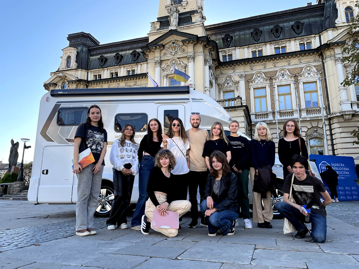 Kasia i Łukasz od pięciu lat mieszkają w kamperze, podróżując po Europie i Azji. W tym czasie zwiedzili 37 krajów. Swoje podróże relacjonują na kalane youtubowym, Instagramie i na blogu. We wtorek, 26 września przyjechali do Nowego Sącza na zaproszenie Sądeckiej Biblioteki Publicznej. Uczestnicy zajęć dziennikarskich mieli okazję spotkać się z podróżnikami i przeprowadzić z nimi wywiad. Blogerzy opowiedzieli o trudnościach życia w kamperze, ale też o zaletach podróżowania po świecie. Cała rozmowa ukaże się jednym z odcinków podcastu „Do usłyszenia” na Spotify. To projekt, który powstał we wrześniu 2022 roku, a tworzą go uczestnicy jednej z grup dziennikarskich w Pałacu Młodzieży. Młodzi ludzie poruszają w nim interesujące ich tematy, opowiadają o swoich pasjach, przeprowadzają wywiady z ciekawymi ludźmi i komentują bieżące sprawy. Obecnie podcast tworzy sześć osób. Właśnie ruszyły prace nad nowymi odcinkami, które ukażą się w najbliższych tygodniach.