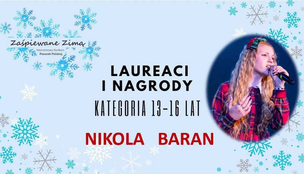 W Konkursie Piosenki Polskiej „Zaśpiewane zimą” w Grajewie najwyższe miejsce zajęła Nikola Baran. Wyróżniono występ Martyny Suchonek.