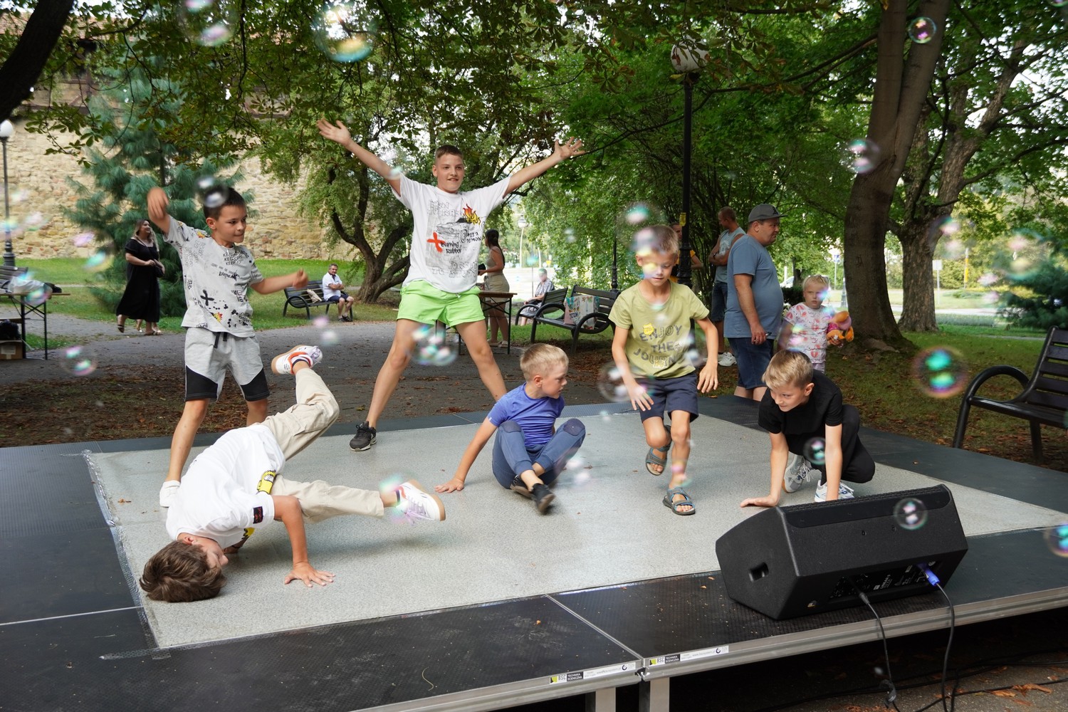 Występy „pałacowych” artystów miały miejsce w różnych lokalizacjach, takich jak Poręba Mała, Stare Miasto, Osiedle Helena, Zawada, Piątkowa i Biegonice. Na osiedlowych scenach zaprezentowały się zespoły taneczne, w tym Pompon Team, Zespół „Sadeczoki”, trio baletowe Adagio, Ballo oraz Mini Ballo. Nie zabrakło również grup tańca break-dance i akrobatyki sportowej, które dostarczyły widzom niezapomnianych emocji.