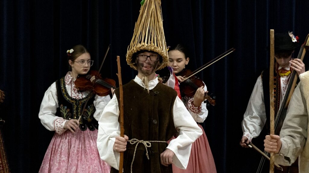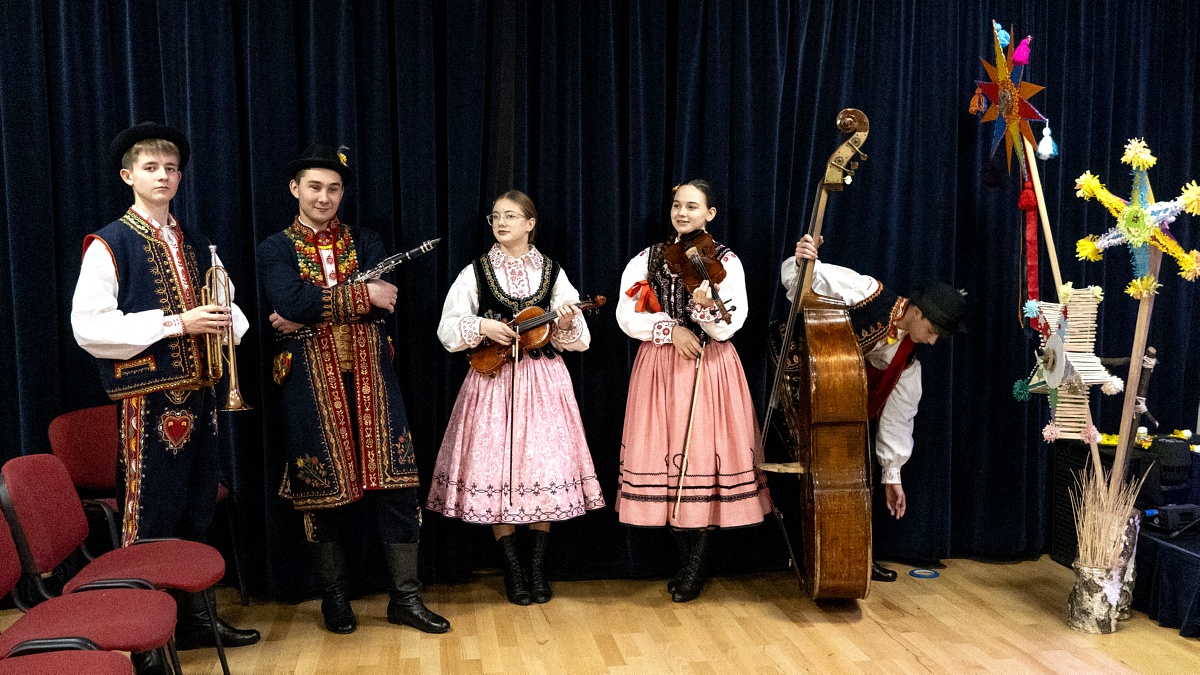 Życzenia świąteczne i noworoczne złożyli członkowie zespołu „Sądeczoki”, którzy wystąpili z programem kolędniczym przygotowanym przez Małgorzatę Grodzką-Kądziołkę. Małym kolędnikom przygrywała kapela pod kierownictwem Krzysztofa Repetowskiego.