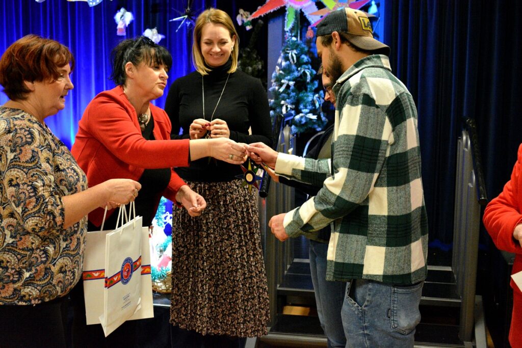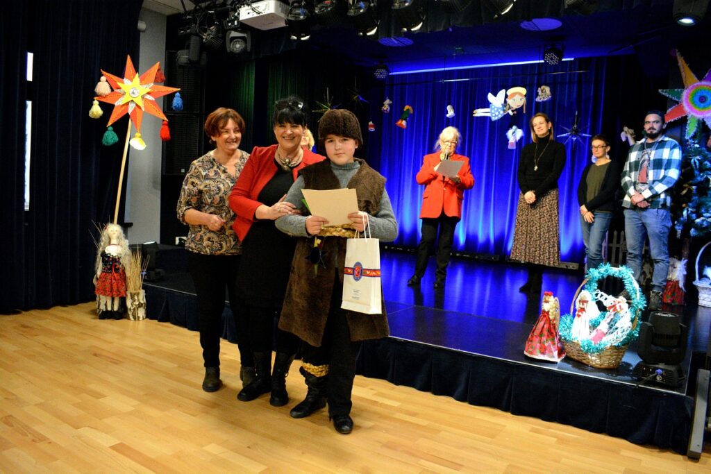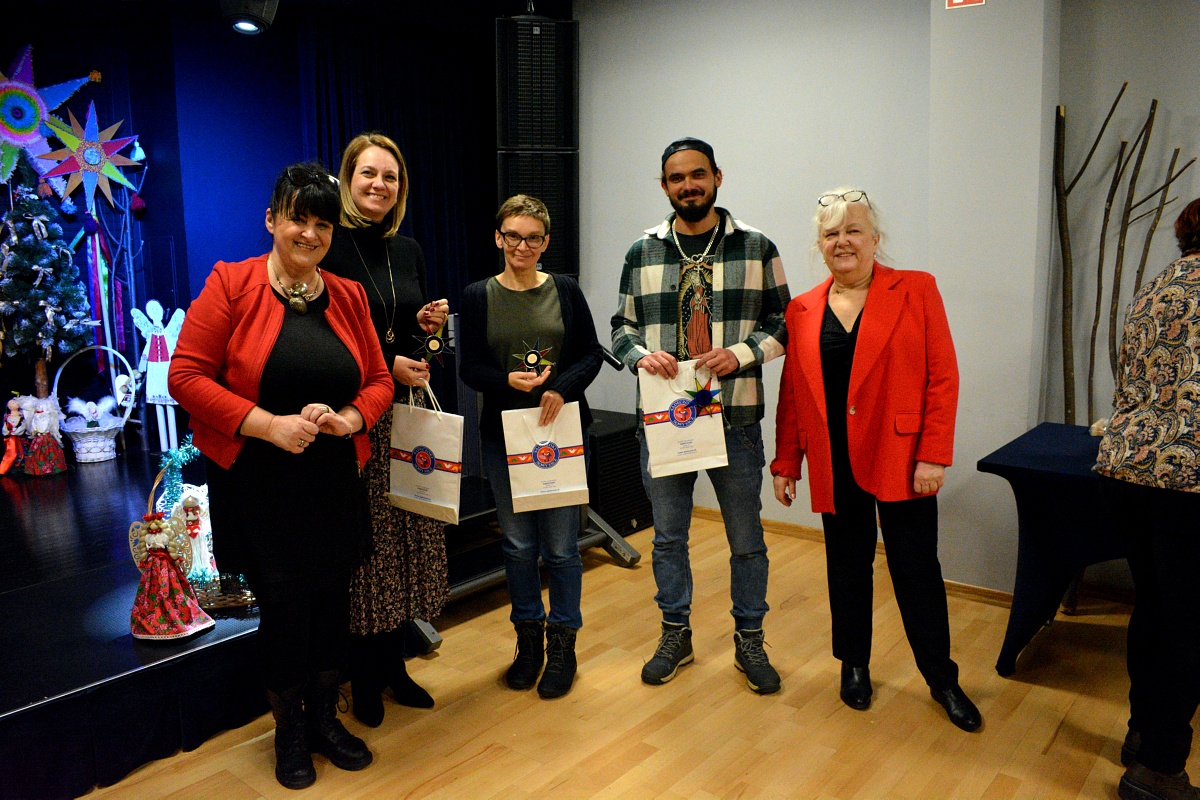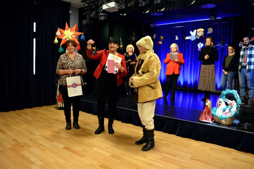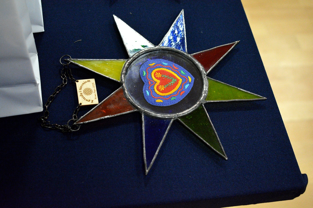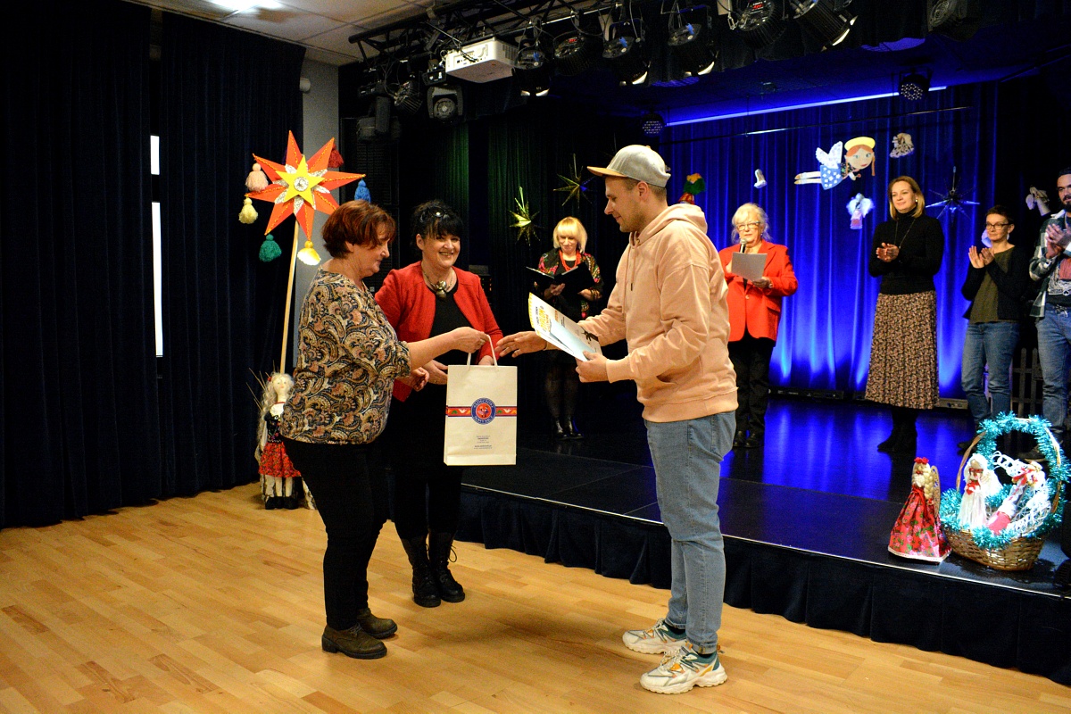 Laureaci przeglądu grup kolędniczych „Z Gwiazdą i Turoniem” otrzymali dyplomy i nagrody oraz statuetkę wykonaną przez nauczyciela plastyki specjalizującego się w sztuce witrażu – Tomasza Ruchały.