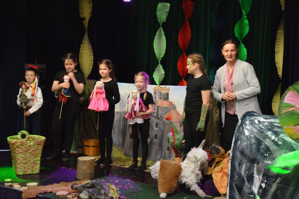 Nie zabrakło także akcentów teatralnych. Uczestnicy warsztatów obejrzeli spektakl kukiełkowy pt. „O smoku wawelskim i mądrym Szewczyku” w wykonaniu grupy teatralnej prowadzonej przez Annę Łukasik. Przedstawienie, oparte na jednej z najsłynniejszych polskich legend, zachwyciło zarówno młodszych, jak i starszych widzów swoją pomysłowością, humorem i przesłaniem. Barwną scenografię przygotowała Anna Skierska-Jurczak, natomiast za oprawę techniczną – oświetlenie i nagłośnienie – odpowiadał Łukasz Owsianka.