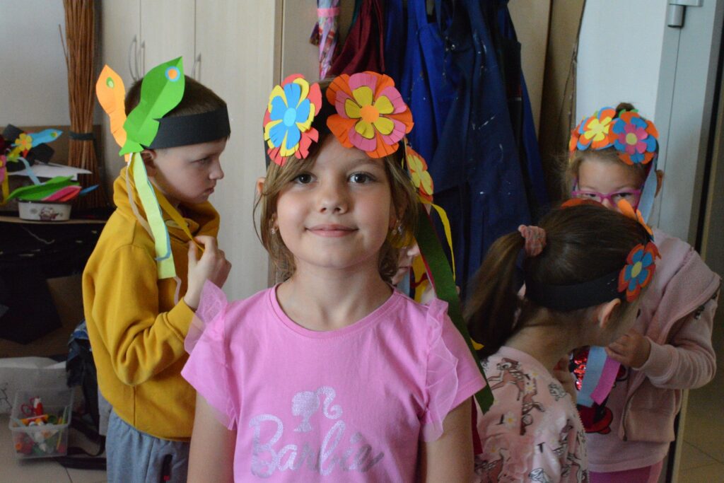 Integralną częścią wydarzenia były również warsztaty plastyczne, podczas których uczestnicy wykonali wianki i czapki krakowskie – charakterystyczne elementy tradycyjnego stroju ludowego z regionu Małopolski. Zajęcia poprowadziły Wioleta Michałowska oraz Natalia Bednarowska, dbając o kreatywną atmosferę i przekazanie wiedzy o symbolice regionalnych ozdób.