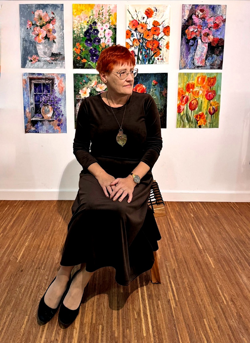 Pani Krystyna Smajdor to emerytowana nauczycielka i kobieta o wielu pasjach, która dopiero trzy lata temu odkryła w sobie zamiłowanie do malarstwa. Jej twórczość wyróżnia się niezwykłą kolorystyką i radością barw. Wśród tematów dominują góry – Beskid Sądecki, Tatry i Pieniny – oraz kwiaty, które są obecne niemal w każdej pracy artystki.