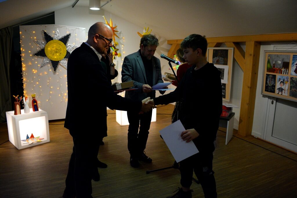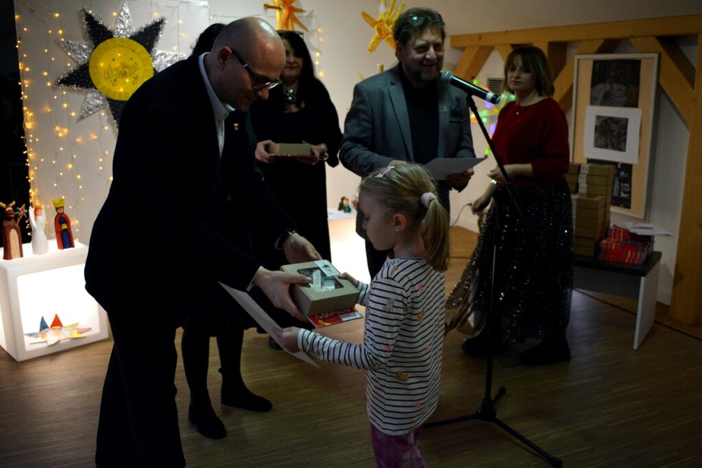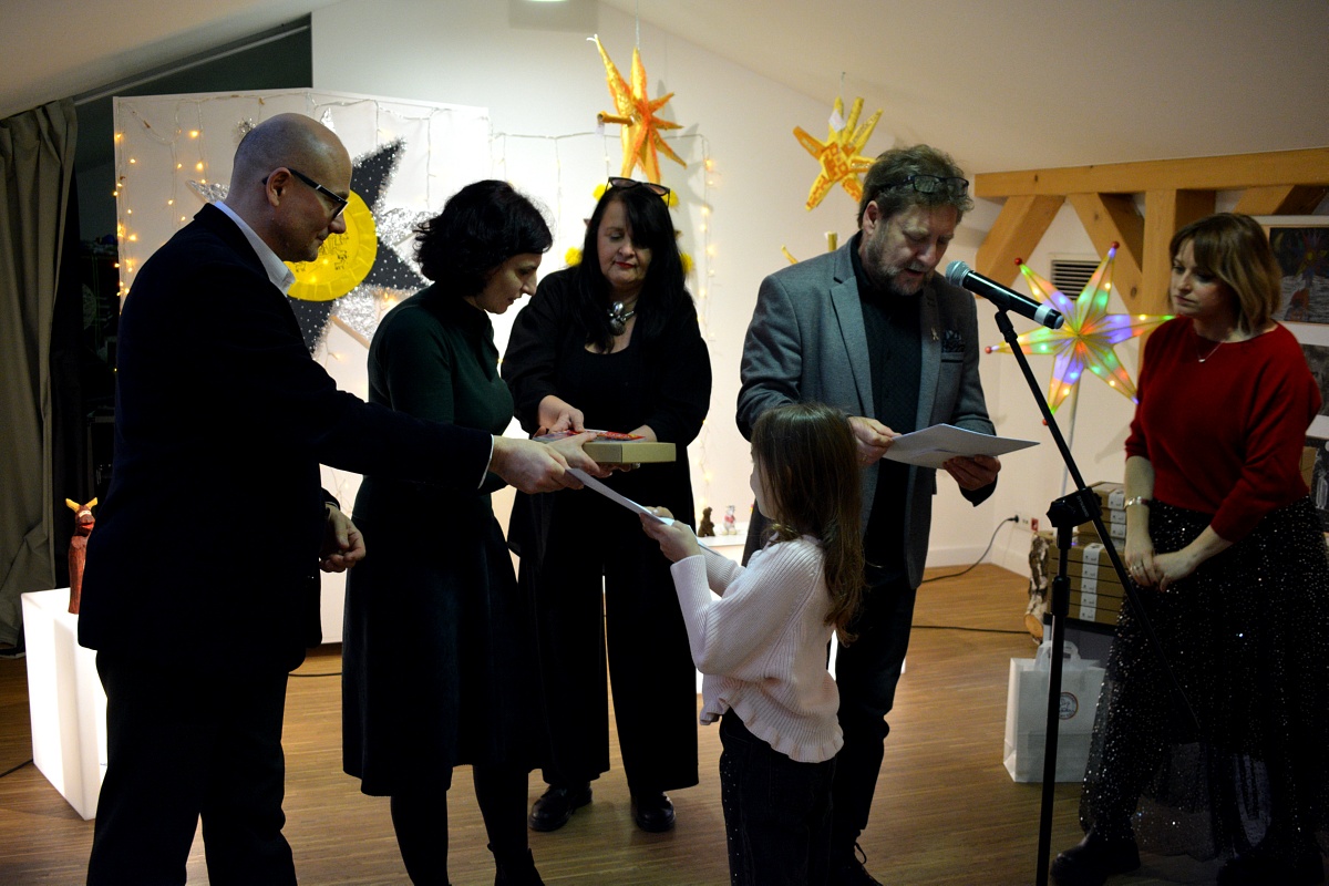 Goście zgromadzili się w Galerii im. Stanisława Szafrana, gdzie od dzisiaj można podziwiać nagrodzone i wyróżnione prace. W tym roku na konkurs napłynęła rekordowa ich liczba. Jurorzy oceniali ponad 640 prac. Uroczystość otworzyła Amelia Cilcic ze Studia Piosenki prowadzonego przez panią Dorotę Szymbarę, która zaśpiewała piosenkę „Każdy w sobie ma anioła”. Później wystąpiła grupa kolędnicza Zespołu Sądeczoki pod kierownictwem Małgorzaty Grodzkiej – Kądziołki.